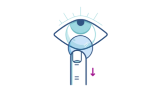 3. Touch the lower edge of the lens with your index finger and slide it down to the lower white part of your eye.