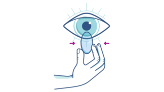7. Look up and gently place the lens on your eye. Release the eyelid and close your eye to let the lens settle.