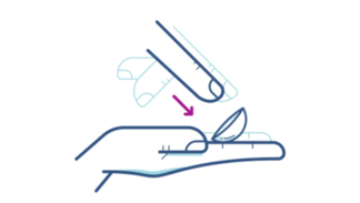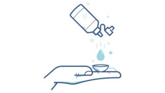 3. In the palm of your hand, apply a few drops of the disinfecting solution onto your contact lens. With one finger, gently rub back and forth.